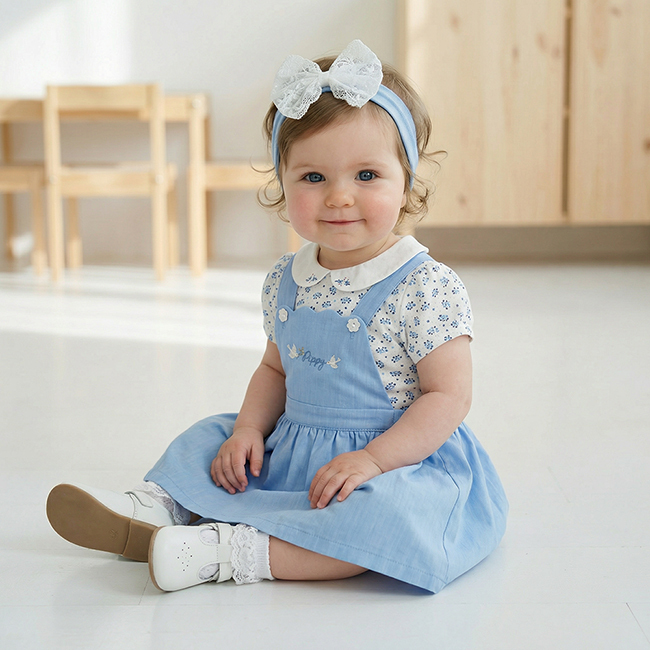◎吊帶銜接處可愛小花裝飾釦