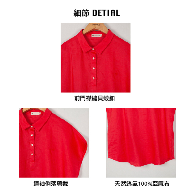 ◎整件採用透氣舒適的亞麻