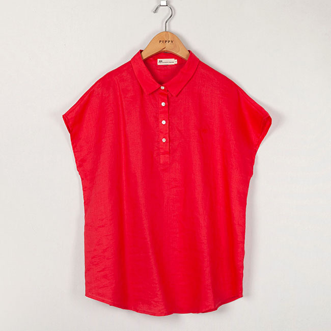 ◎小翻領短袖亞麻襯衫