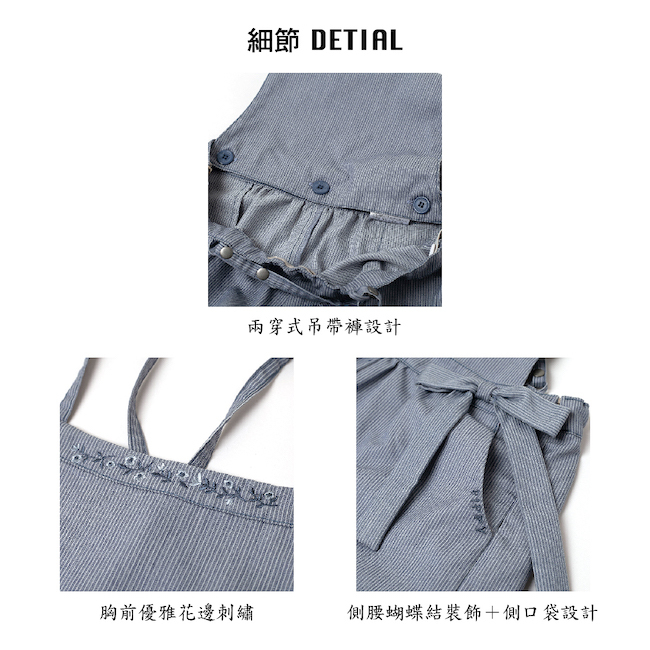 ◎兩穿式吊帶褲設計