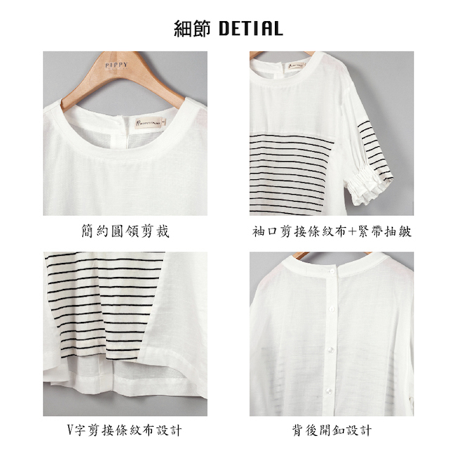 ◎袖口剪接條紋布+緊帶抽皺設計