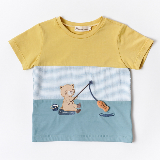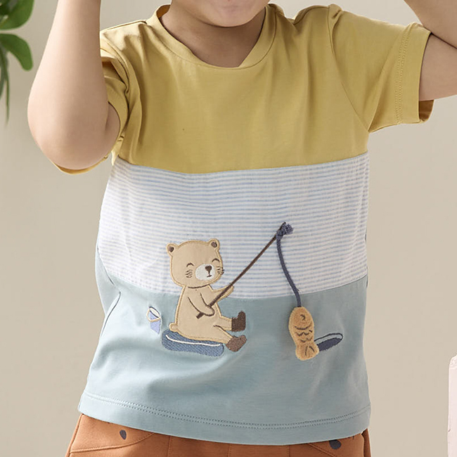 ◎悠閒小熊釣魚繡花設計