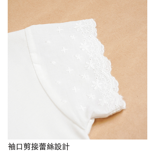 ◎袖口剪接蕾絲設計