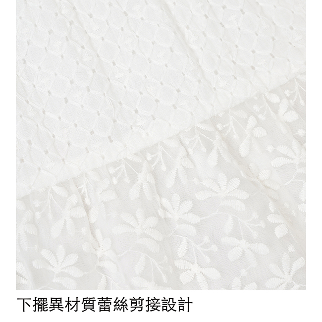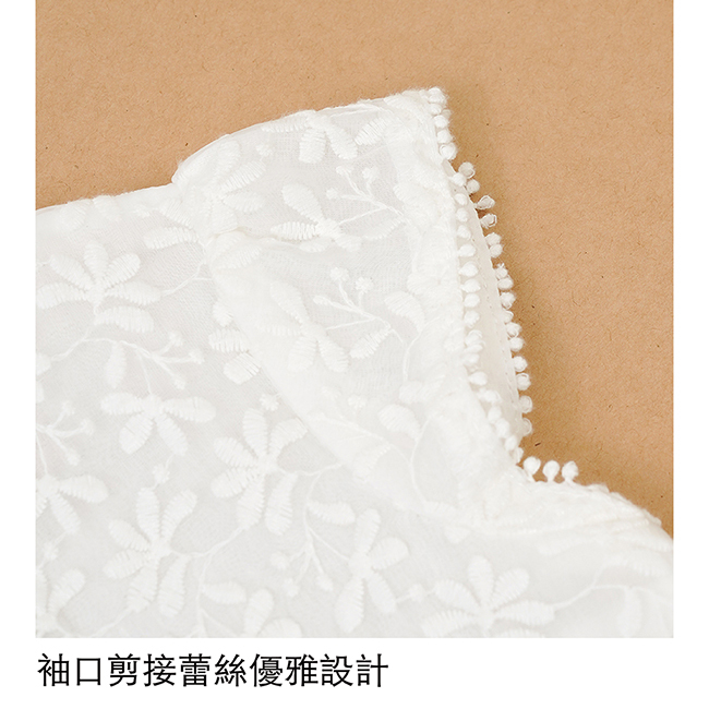 ◎袖口剪接蕾絲優雅設計