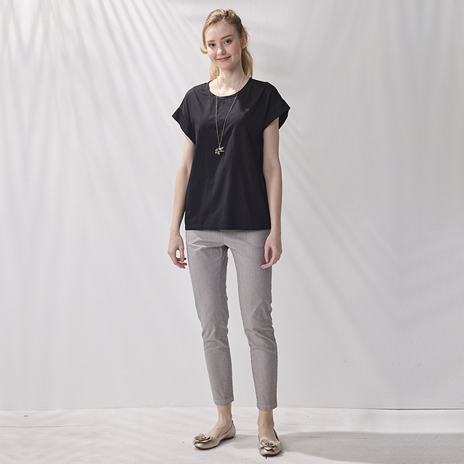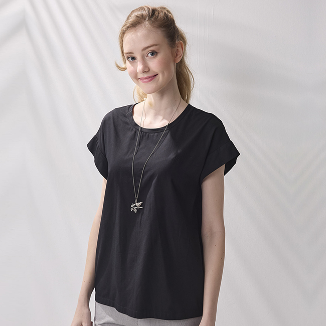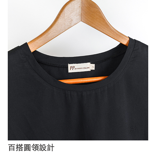 PIPPY簡約舒適圓領素面短袖上衣 黑