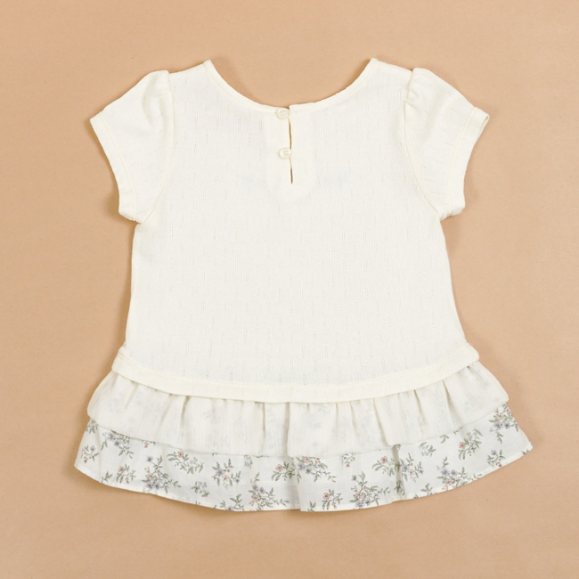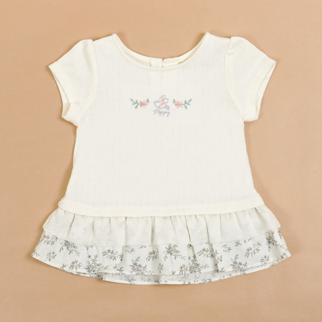 ◎下擺剪接清爽碎花布
