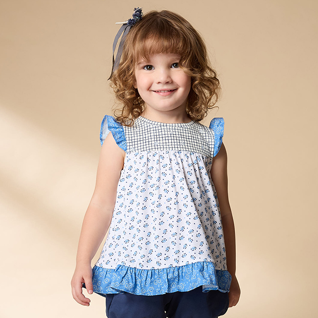 ◎衣身剪接小花印花布
