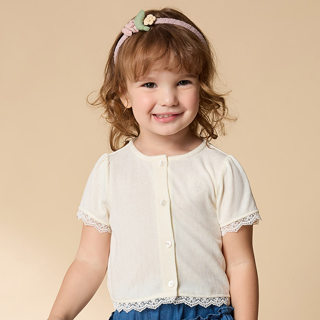 PIPPY 優雅剪接蕾絲圓領短袖外套 白