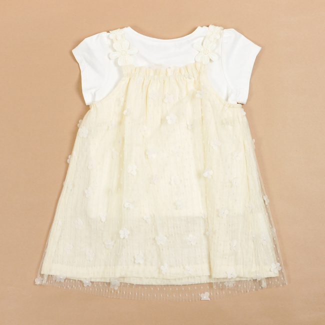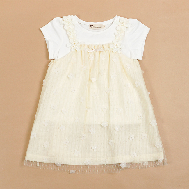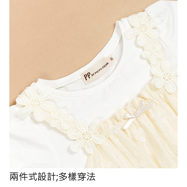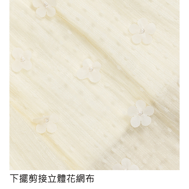 ◎下擺剪接立體花網布