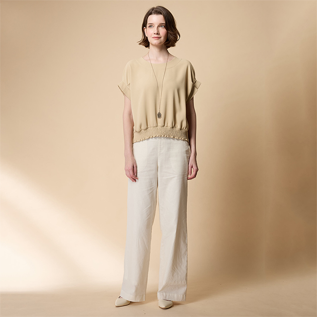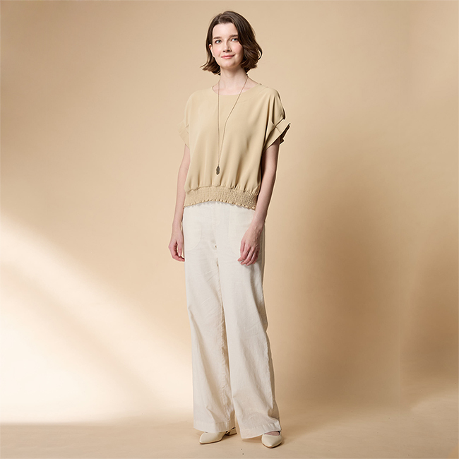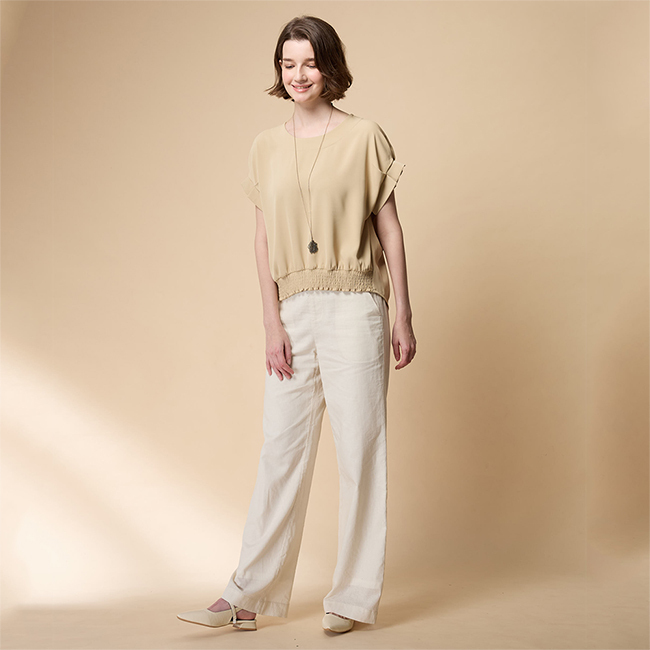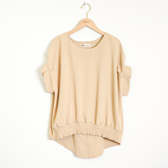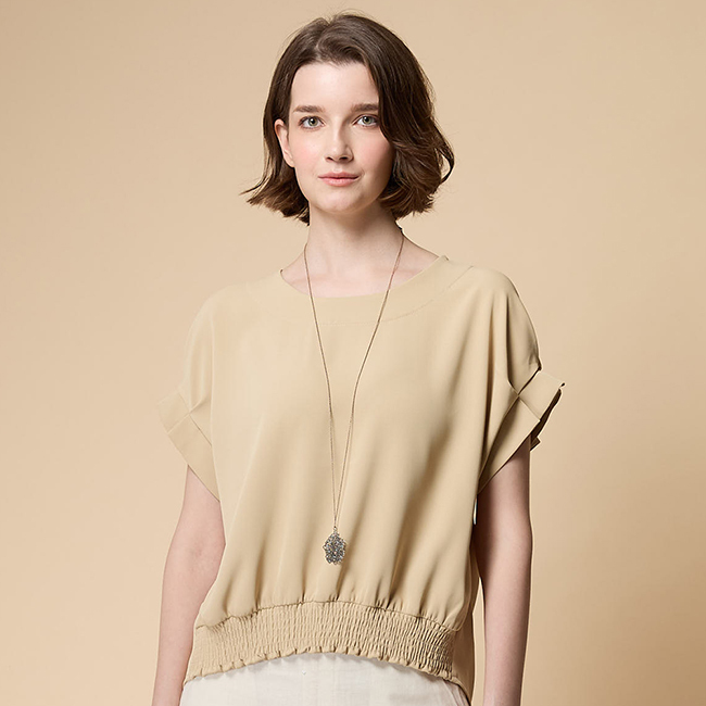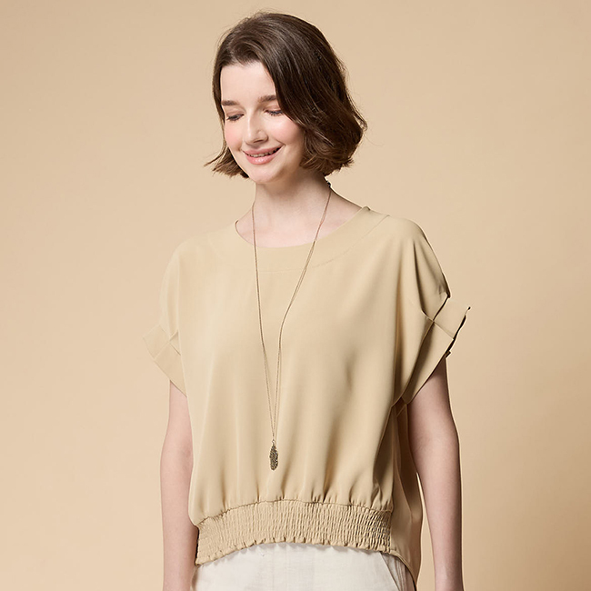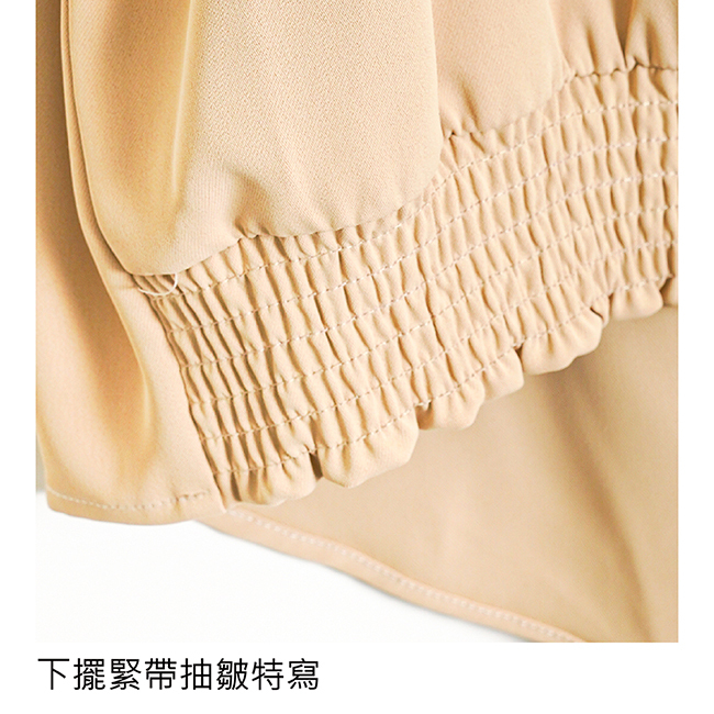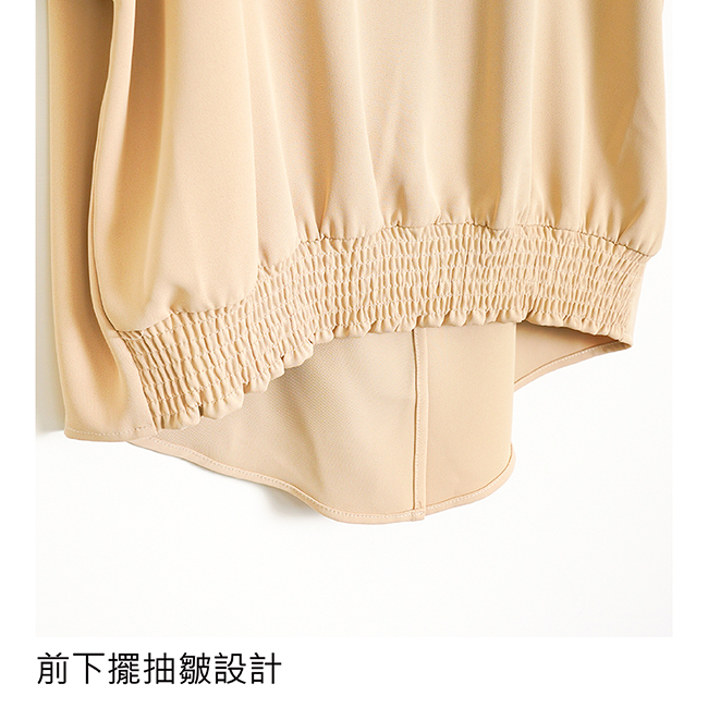 ◎前衣下擺抽皺設計