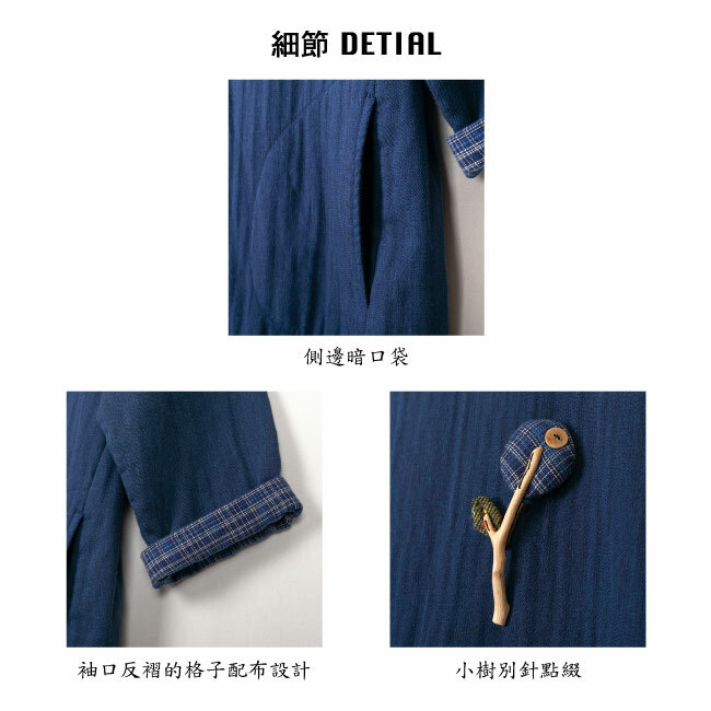 ◎袖口反褶處搭配格子布增加搶眼度