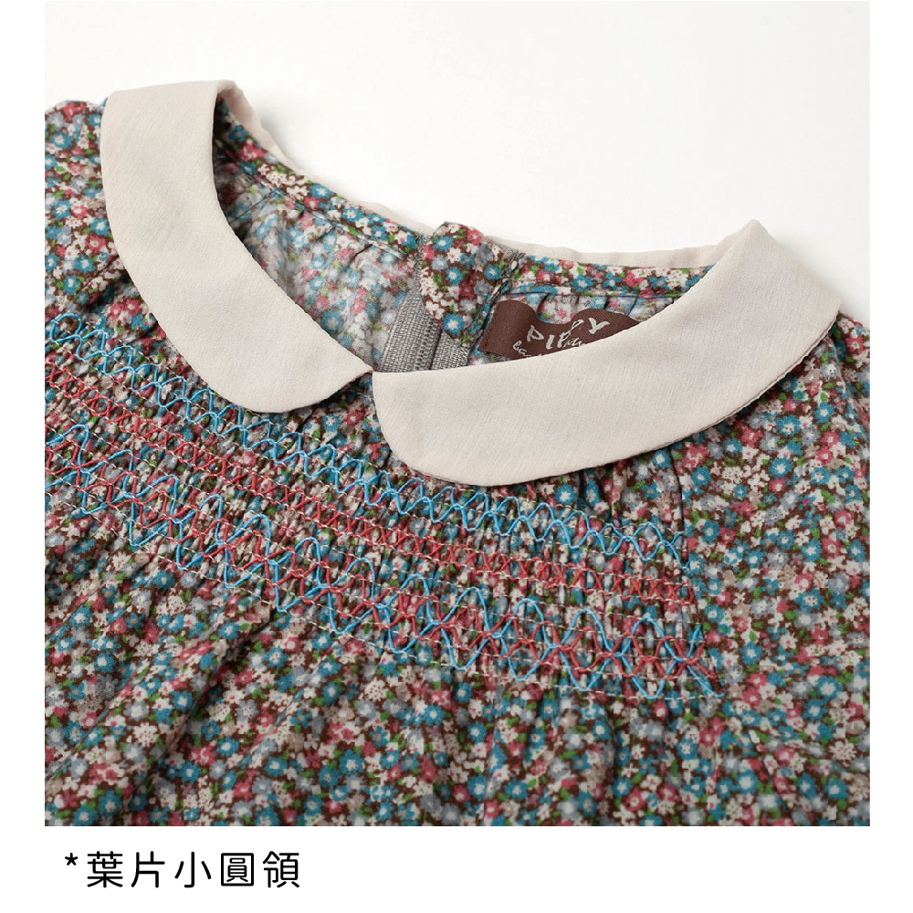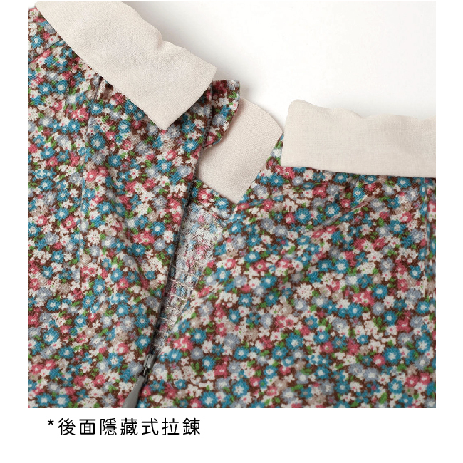 ◎小圓領,袖口緊帶荷葉