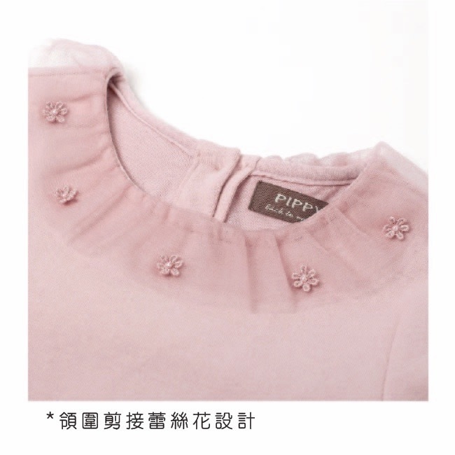 ◎領圍剪接蕾絲花設計