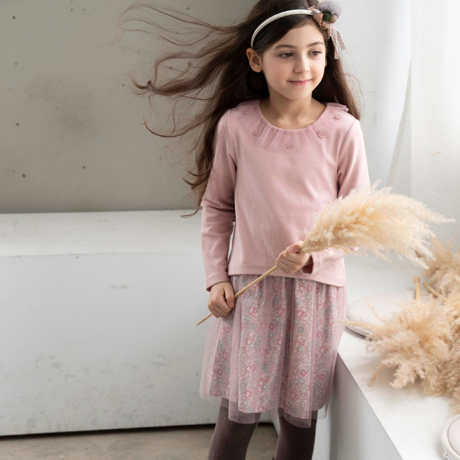 ◎裙襬剪接網紗裙