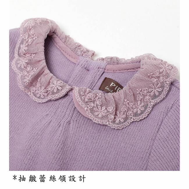 ◎抽皺蕾絲領,下襬繡花設計