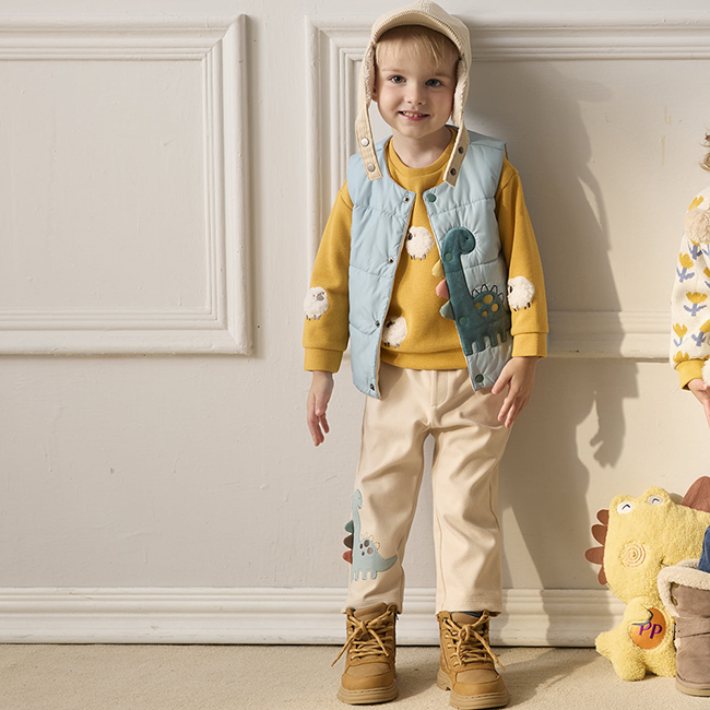 ◎下擺小恐龍繡花設計