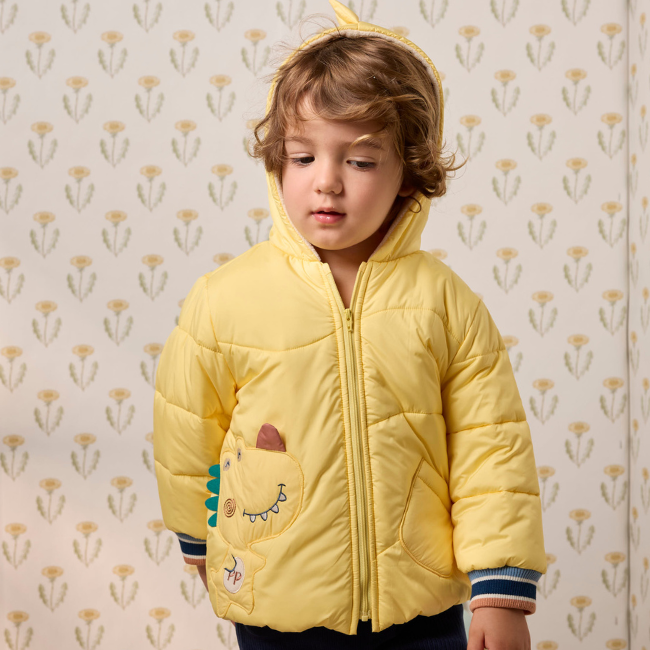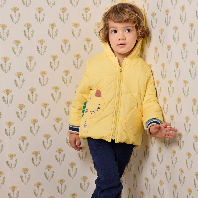 PIPPY 可愛恐龍鰭造型亮眼連帽風衣鋪棉外套 黃