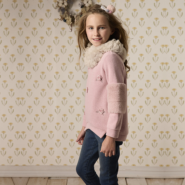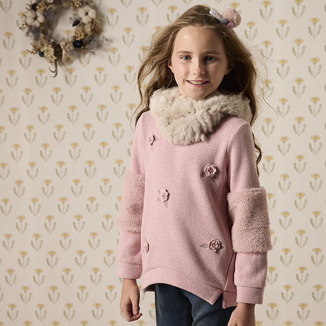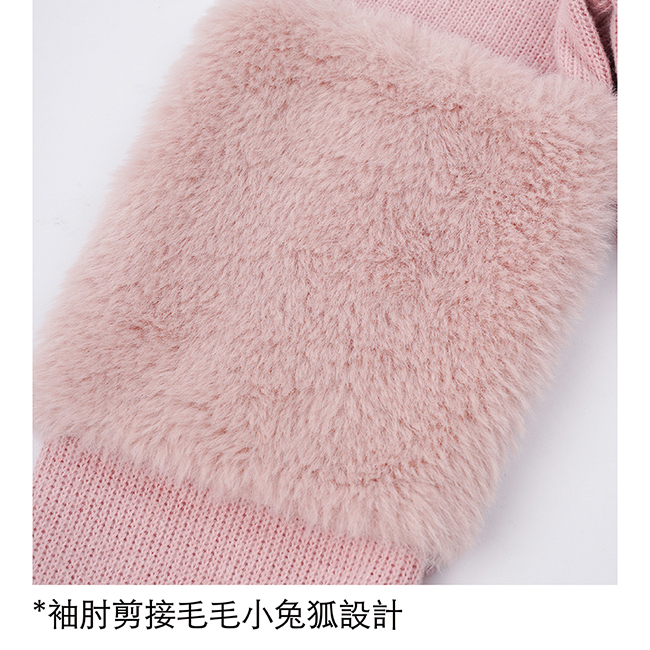 ◎袖肘剪接毛毛小兔狐設計
