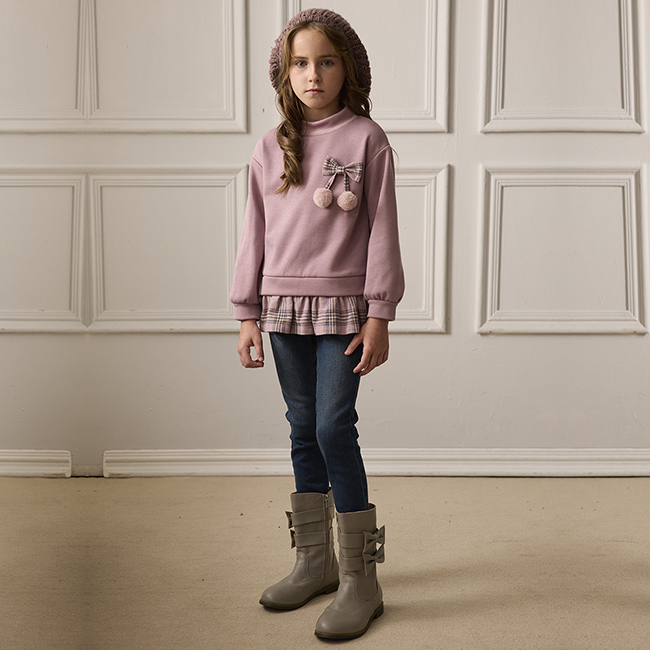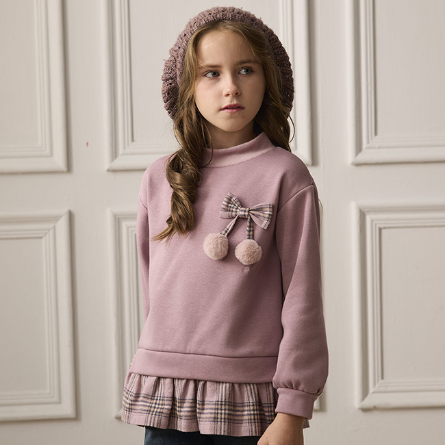 ◎格紋蝴蝶結立體毛球設計