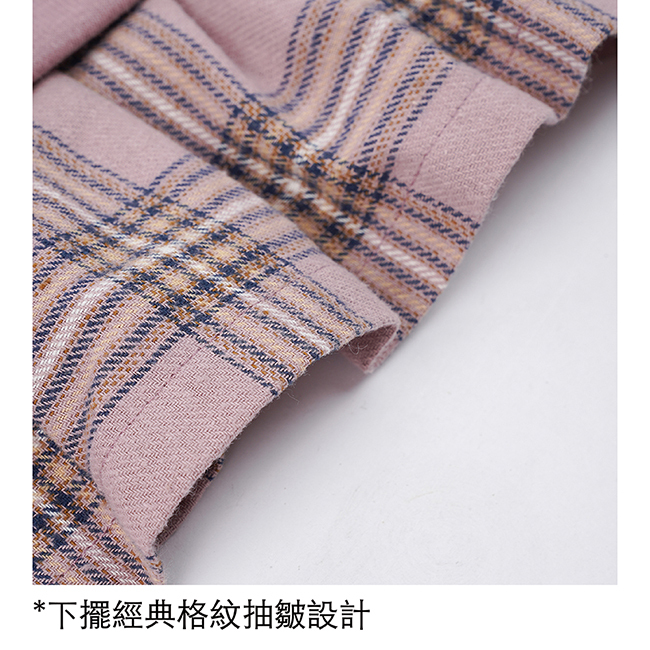 ◎下擺經典格紋抽皺設計
