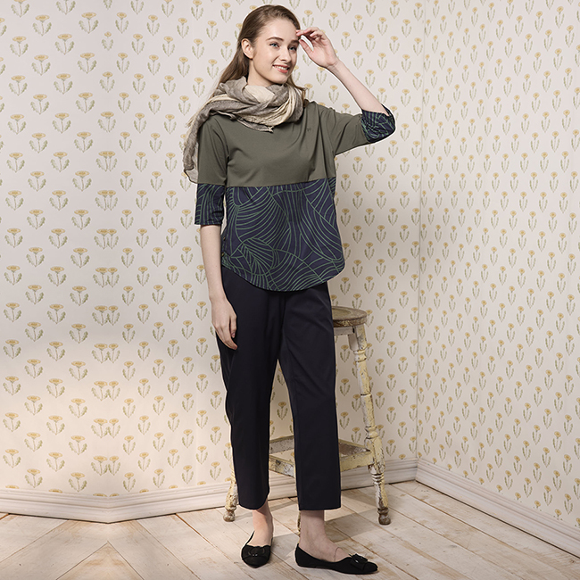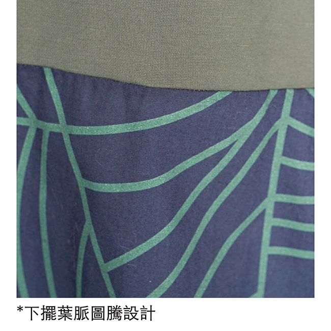 ◎下擺剪接格紋/葉脈圖騰設計
