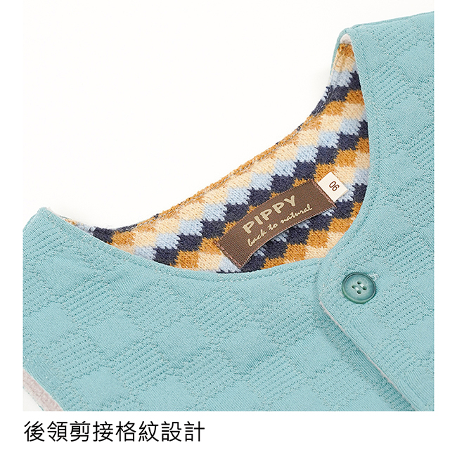 ◎後領剪接格紋設計