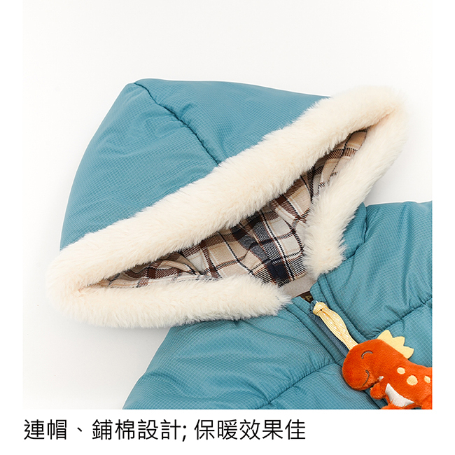 ◎連帽、鋪棉設計; 保暖效果佳