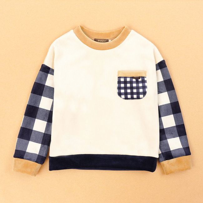 ◎袖子剪接格紋
