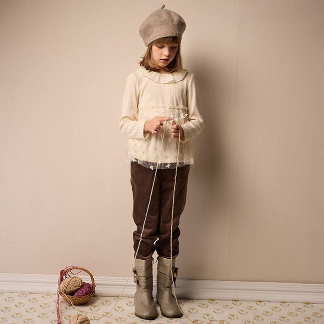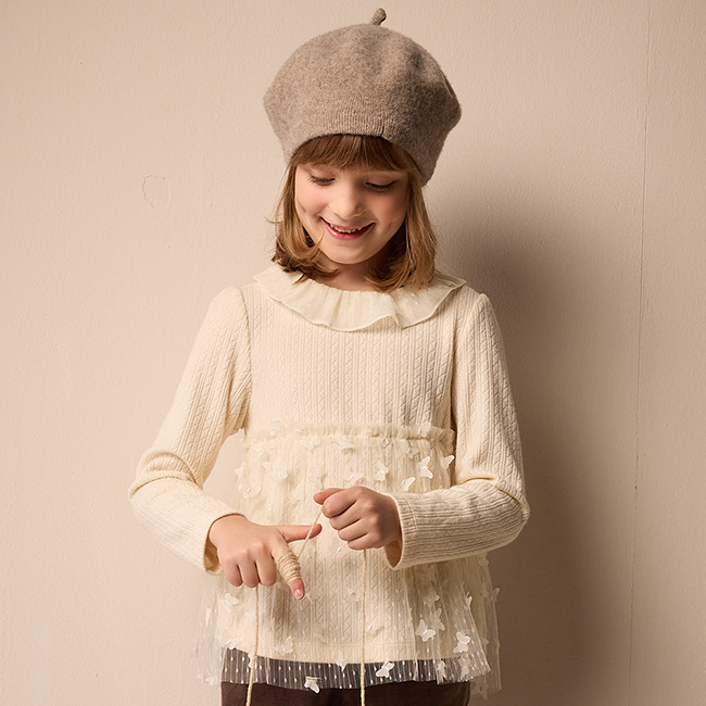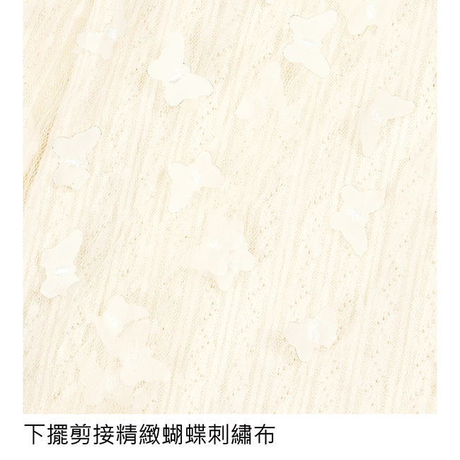 ◎下擺剪接精緻蝴蝶刺繡布