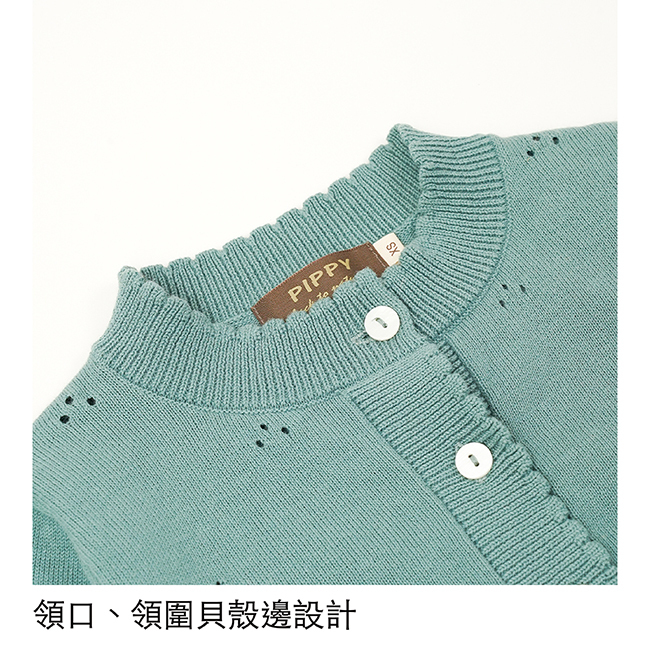 ◎低調細節: 領口、領圍貝殼邊設計