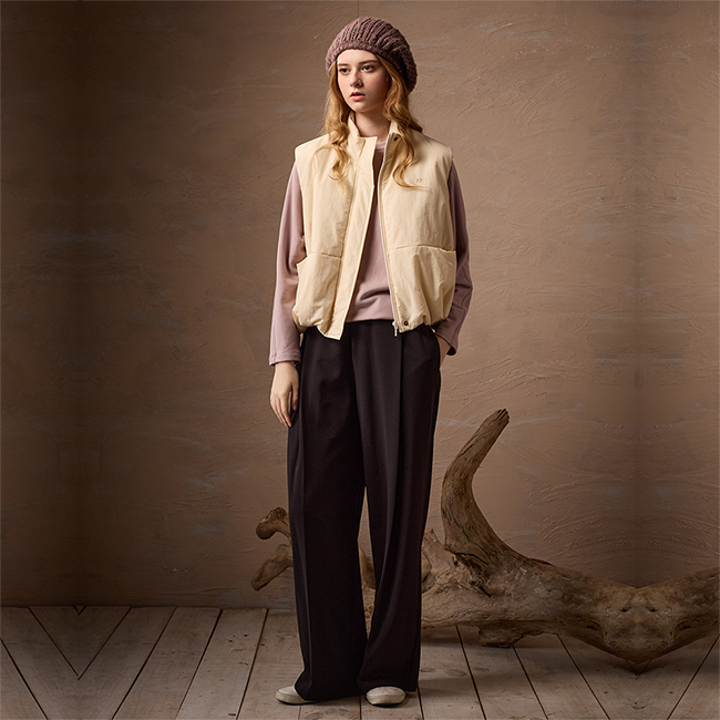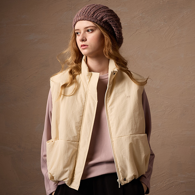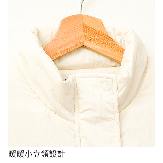 PIPPY 俐落立領麵包風衣鋪棉背心 米