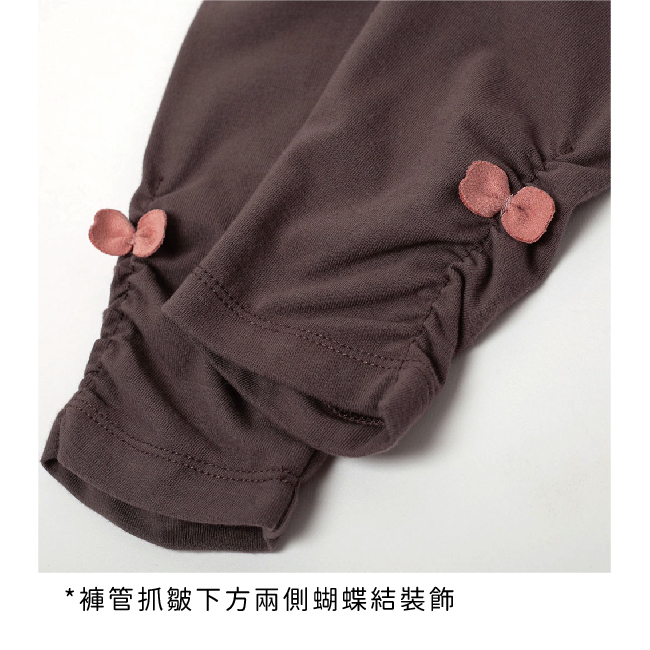 ◎褲管抓皺下方兩側蝴蝶結裝飾