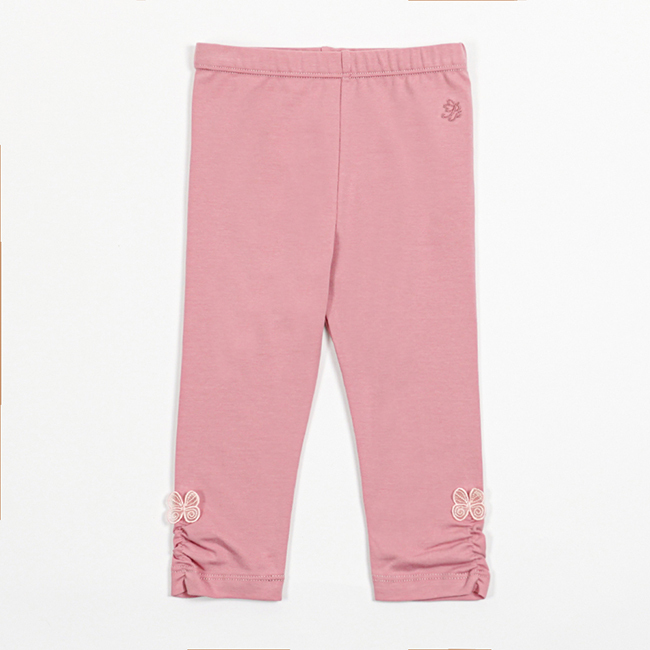 PIPPY 舒適彈性棉下抽皺內搭長褲 粉紫